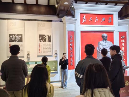 活动伊始,全体学员在纪念馆前整齐列队,进行参观前合影。在讲解员的带领下,学员们有序进入展厅。通过"打破碗花花""卫生工作做得好""这是一片青枝绿叶"等生动故事,深入了解了毛主席深入基层、关心群众生活的优良作风。这些鲜活的史料让学员们深刻体会到党的群众路线和务实精神,现场学习氛围浓厚。参观过程中,学员们认真聆听讲解,不时驻足观看历史文物和珍贵照片。