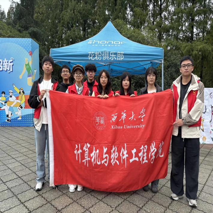 活动尾声,参与服务的社团成员和志愿者们手持西华大学计算机与软件工程学院院旗合影留念,定格下此次志愿活动的温暖瞬间。此次电脑清灰活动,不仅切实解决了同学们的设备问题,更体现了计算机与软件工程学院社团和学生会“立足校园、服务同学”的宗旨,后续团队将继续关注学子需求,策划更多实用的便民服务活动。