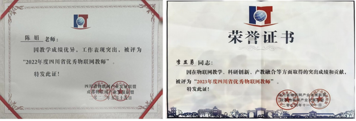 图6本系教师获“四川省优秀物联网教师”荣誉称号