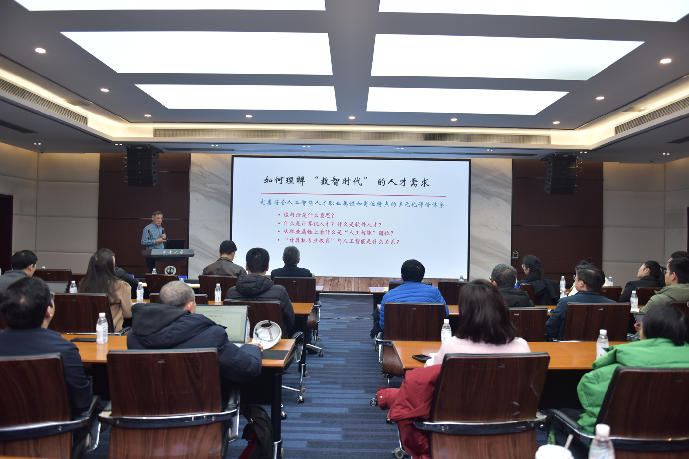 论坛首场报告由南京大学教授、中国工程教育专业认证协会常务理事陈道蓄主讲,题为《数智时代的计算机教学课堂改革》。陈道蓄教授立足人工智能特别是大语言模型(LLM)迅猛发展的时代背景,深入剖析了数智技术对计算机人才培养带来的深刻变革与全新挑战。他指出,技术迭代日新月异,“变革”已成为常态,而教育的核心使命恰恰在于“以不变应万变”。为此,课程改革必须超越工具层面的更新,聚焦内涵提升,着力强化学生的问题意识、批判性思维和终身学习能力,引导其通过深度思考把握技术本质,从容应对未来不确定的技术演进与社会需求。